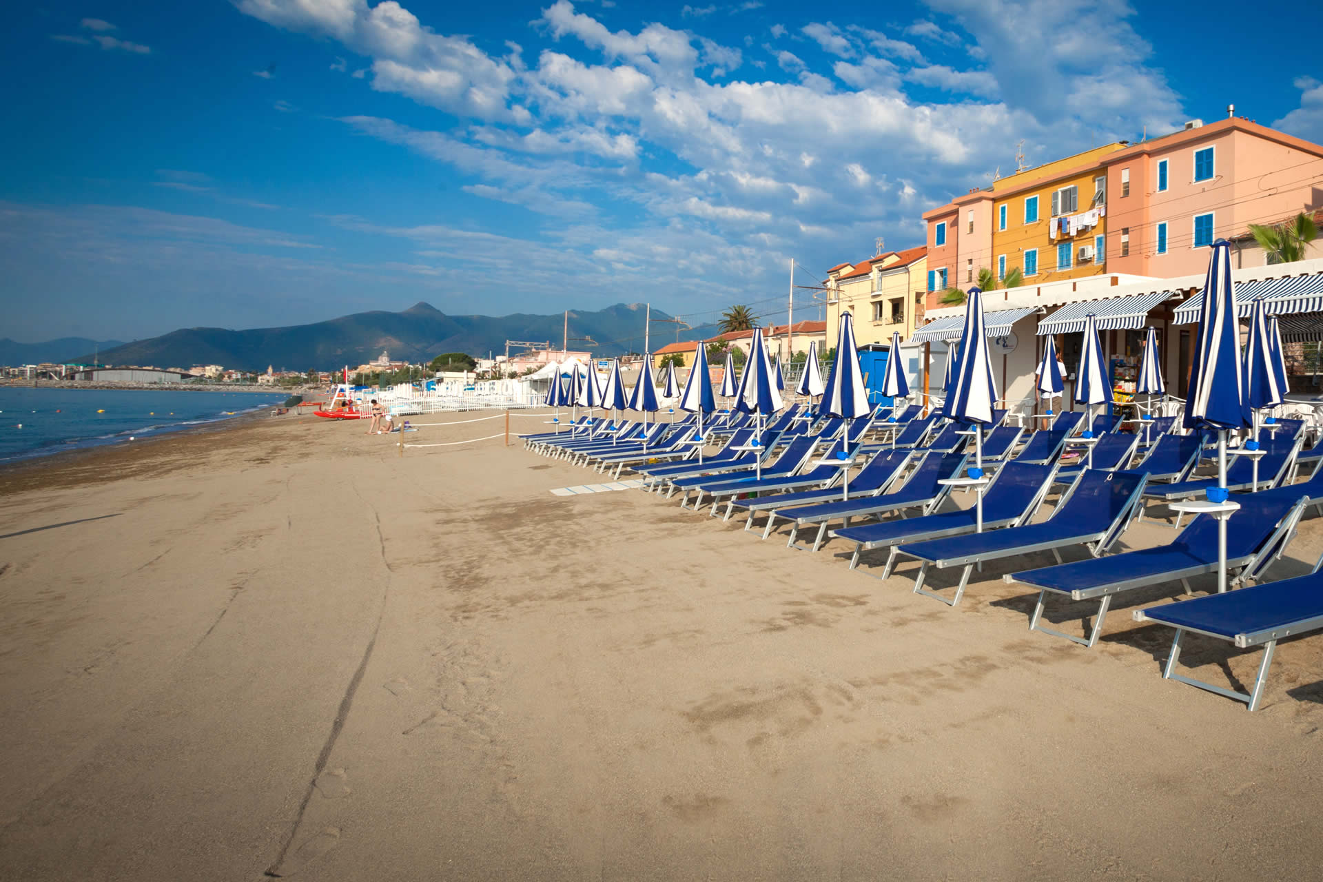 con ombrelloni e lettini da sole, l'ideale per abbronzarsi o riposarsi in totale relax .