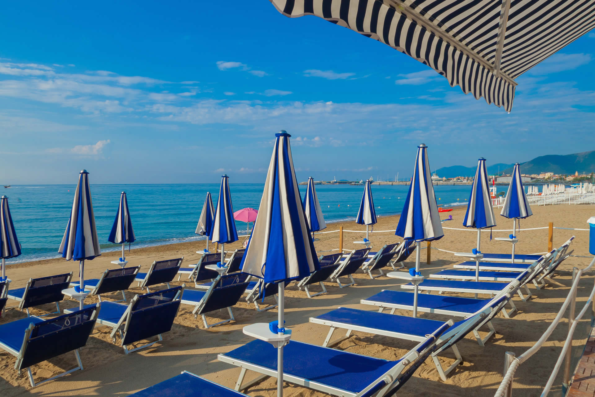 con ombrelloni e lettini da sole, l'ideale per abbronzarsi o riposarsi in totale relax .